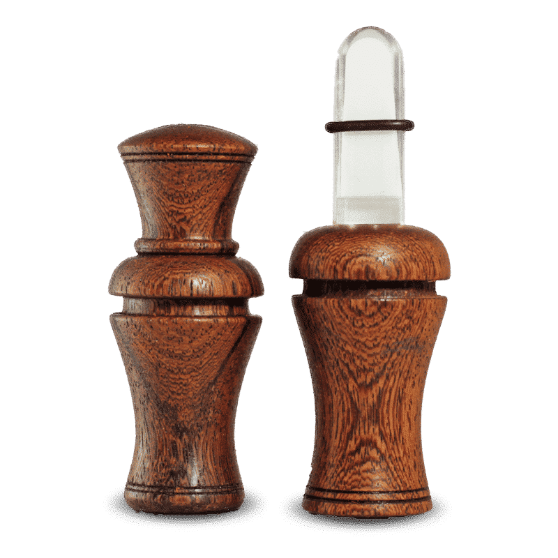 This duo consists of the Li’l distress and a small 3 7/8″ long “Howler” with an acrylic insert. It’s the essential duo for the predator hunter. Available in 3 exotic wood species.