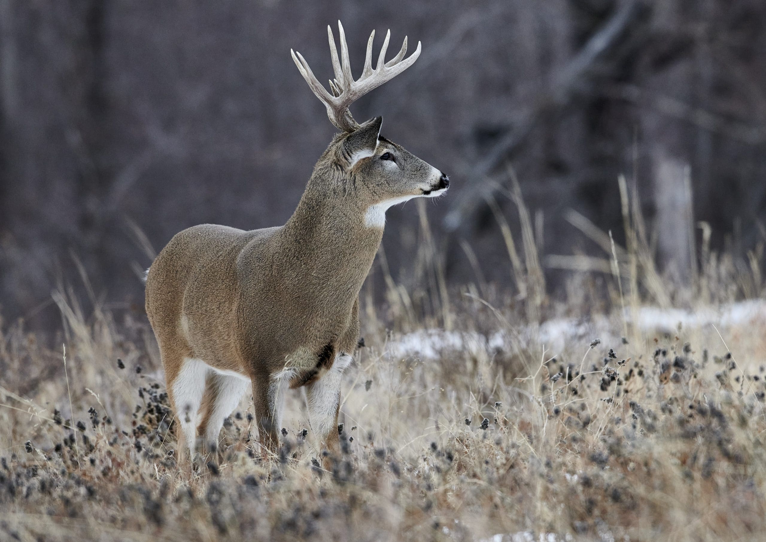 Nervous. Always on the lookout. On frozen ground, it prefers tight thickets. A suspicious noise and it flees.
