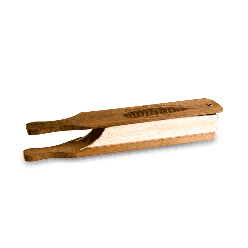 Cet ensemble à l’épreuve de l’eau comprend : un diaphragme, un appeau à friction avec surface d’aluminium (stricker) en carbone ainsi qu’une boîte munie d’un enduit permanent et imperméable qui remplace l’application de craie. Il mesure 9 1/4″ de long.